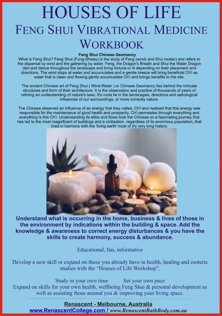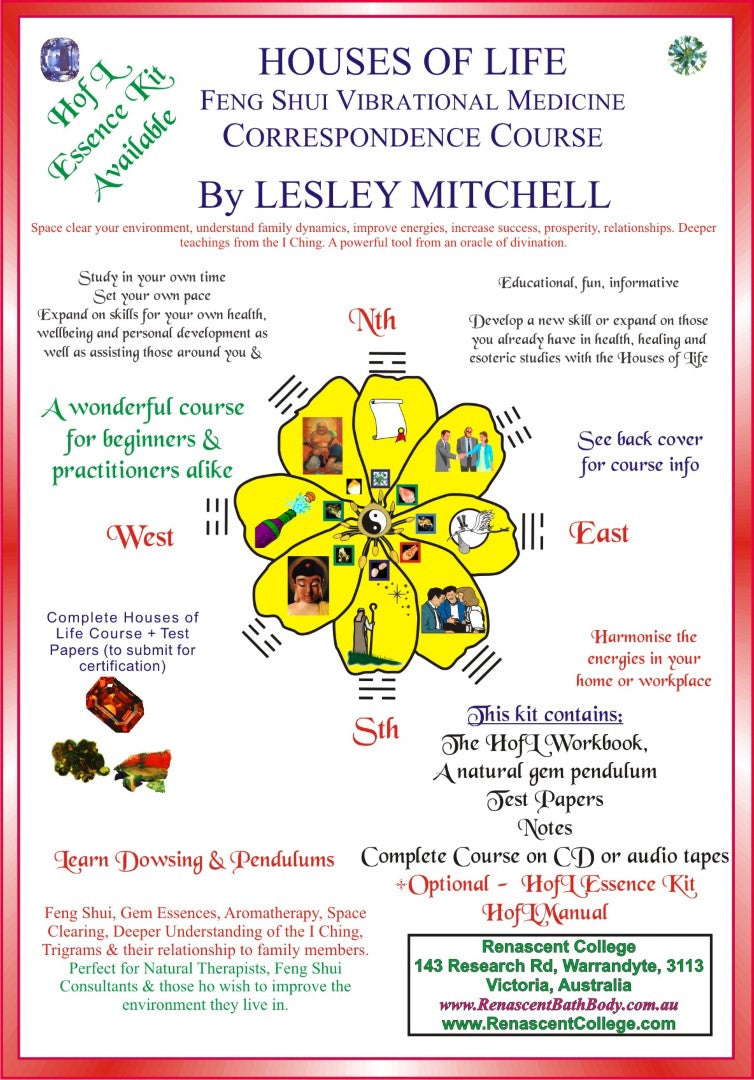 Certificate will be posted on successful completion. Accredited with Renascent & The International College of Intuitive Sciences. Also includes complete "Houses of Life - Feng Shui Vibrational Medicine" workbook