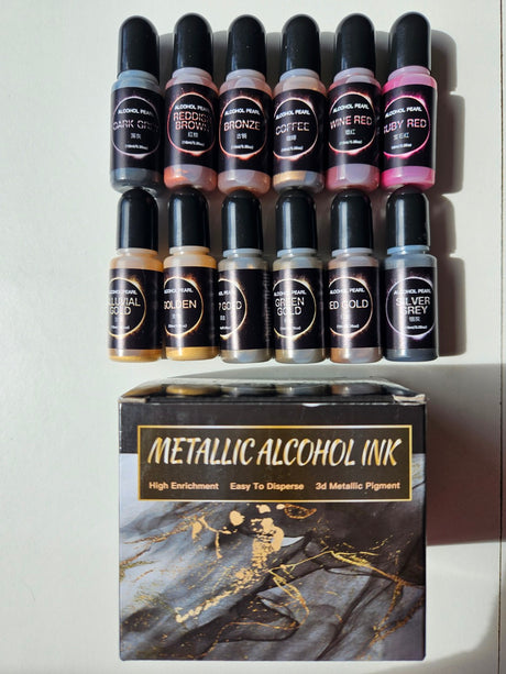 Metallic Alcohol Ink Pigments10ml x 12 Colours Set